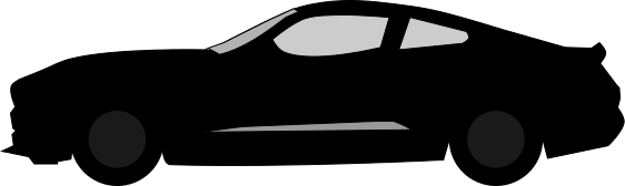 This features a black car, possibly a Mustang, driving down the road. It is captured in a silhouette style, which emphasizes its shape and design. The car appears to be moving quickly, as it has a sense of motion blur around it. This artistic representation of the vehicle showcases its sleek lines and aerodynamic design, making it an eye-catching piece of automotive art.