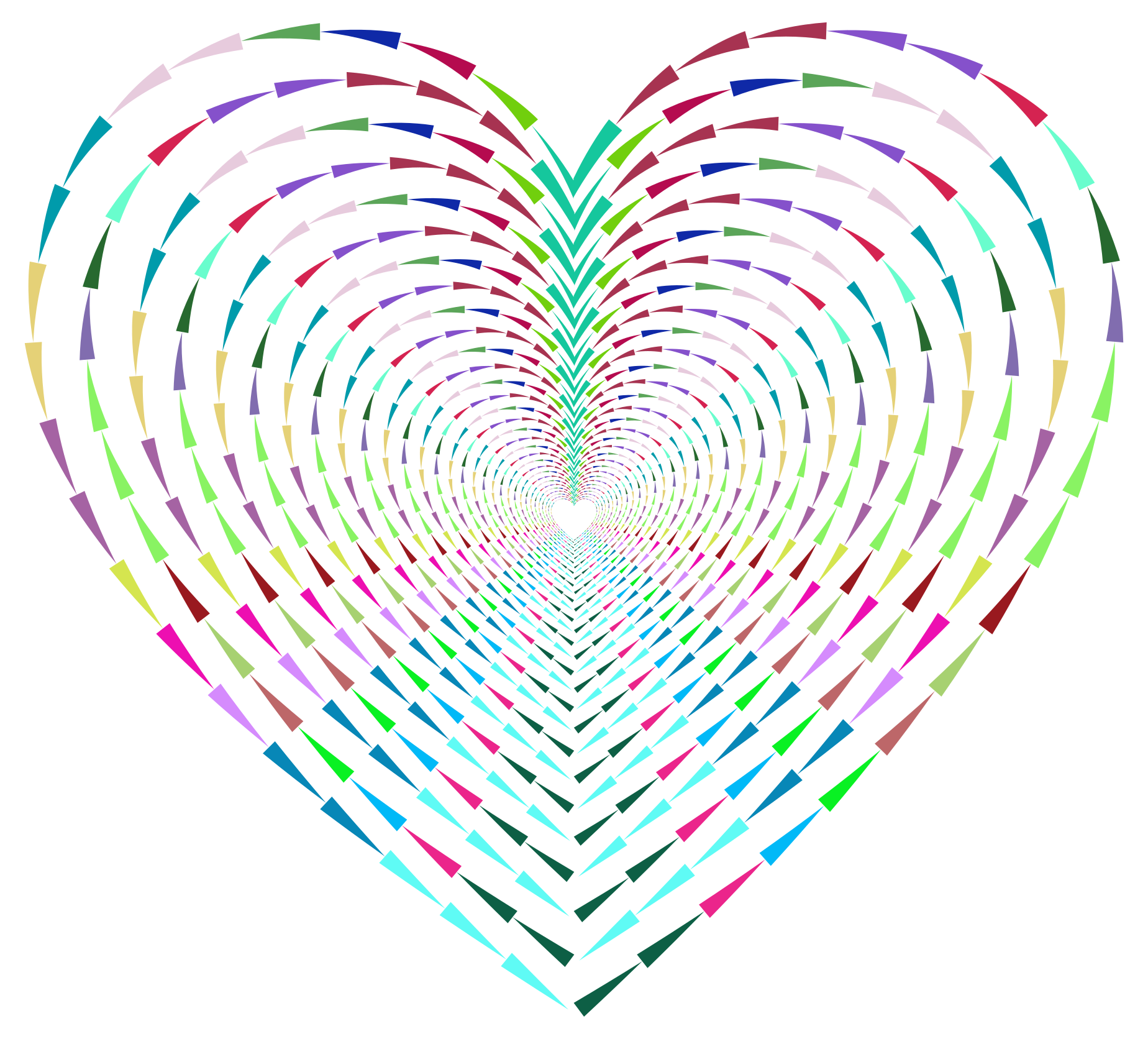 This features a heart-shaped pattern made up of various colored stripes. These stripes are arranged in a circular fashion, creating an intricate and visually appealing design. The colors used in the heart include red, green, blue, yellow, pink, orange, purple, and white. Each color is represented by its corresponding stripe, making it a vibrant and diverse pattern that stands out against the background.