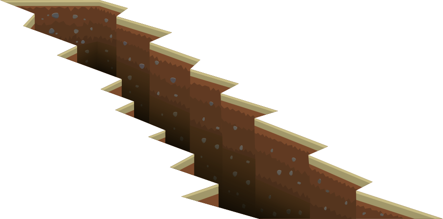 This features a large crack in the ground, with a steep incline leading downward. This crevice appears to be made of wood and has a brown color. It is surrounded by a white background that contrasts with the wooden structure. The crack seems to extend into the distance, creating an intriguing visual effect.
