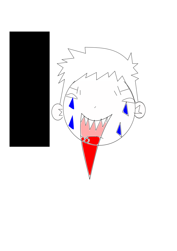 This features a cartoon drawing of a person with blue eyes and red lips. The person has a ferocious expression, as if they are growling or showing their teeth. They have a long tongue sticking out of their mouth, adding to the intense appearance. The drawing is in black and white, giving it an artistic and dramatic feel.
