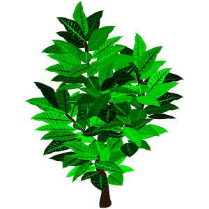 This features a green tree with large leaves, giving it an almost tropical appearance. The tree is depicted in a close-up view, allowing the viewer to appreciate its intricate details. The leaves are vibrant and lush, creating a sense of freshness and vitality. The tree's branches extend outwards, providing a sense of depth and dimension to the image. Overall, it is an artistic representation of nature that captures the beauty of the greenery.