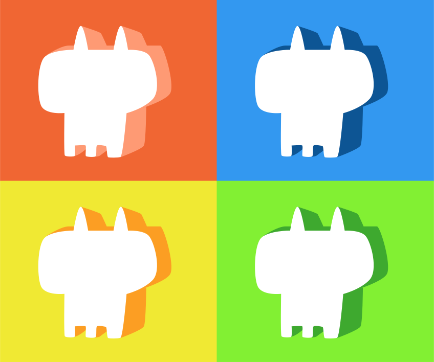 This features a colorful display of four cartoon dog heads, each in a different colored square. These cute and playful images are arranged in a visually appealing manner, with the dogs' heads taking up the entirety of their respective squares. The colors used for these squares include yellow, green, blue, and orange, creating an eye-catching and vibrant display.