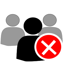This features a group of three people standing next to each other. Each person is represented by a small black and white silhouette, with one on the left side, another in the middle, and the third on the right side. A large red circle with a white X inside it is placed over the center person's silhouette, drawing attention to them. The overall composition of the image suggests that this could be an illustration or graphic design element.