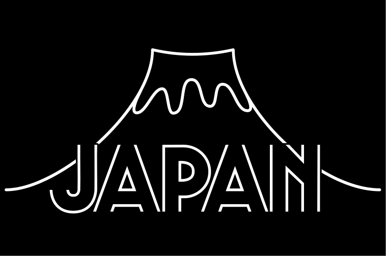 This features a black and white design of Mount Fuji, the iconic Japanese mountain. The mountain is depicted in silhouette form with its peak visible above the clouds. The word "Japan" is written below the mountain, emphasizing its association with the country. This artistic representation captures the essence of Japan's cultural heritage and natural beauty.