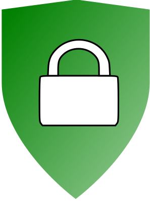 This features a green shield with a white keyhole in the center. This keyhole is surrounded by a white border, giving it an old-fashioned appearance. The shield itself has a slightly darker shade of green, creating a contrasting effect between the two colors. Overall, the design gives off a classic and timeless vibe.