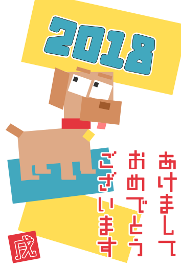 Tags: nenga, nengajo, new year, festival, japan, japanese postcard, postcard, hagaki, 2018, dog, year of the dog, chinese zodiac, zodiac, squared, cubic, yellow, red, blue, brown