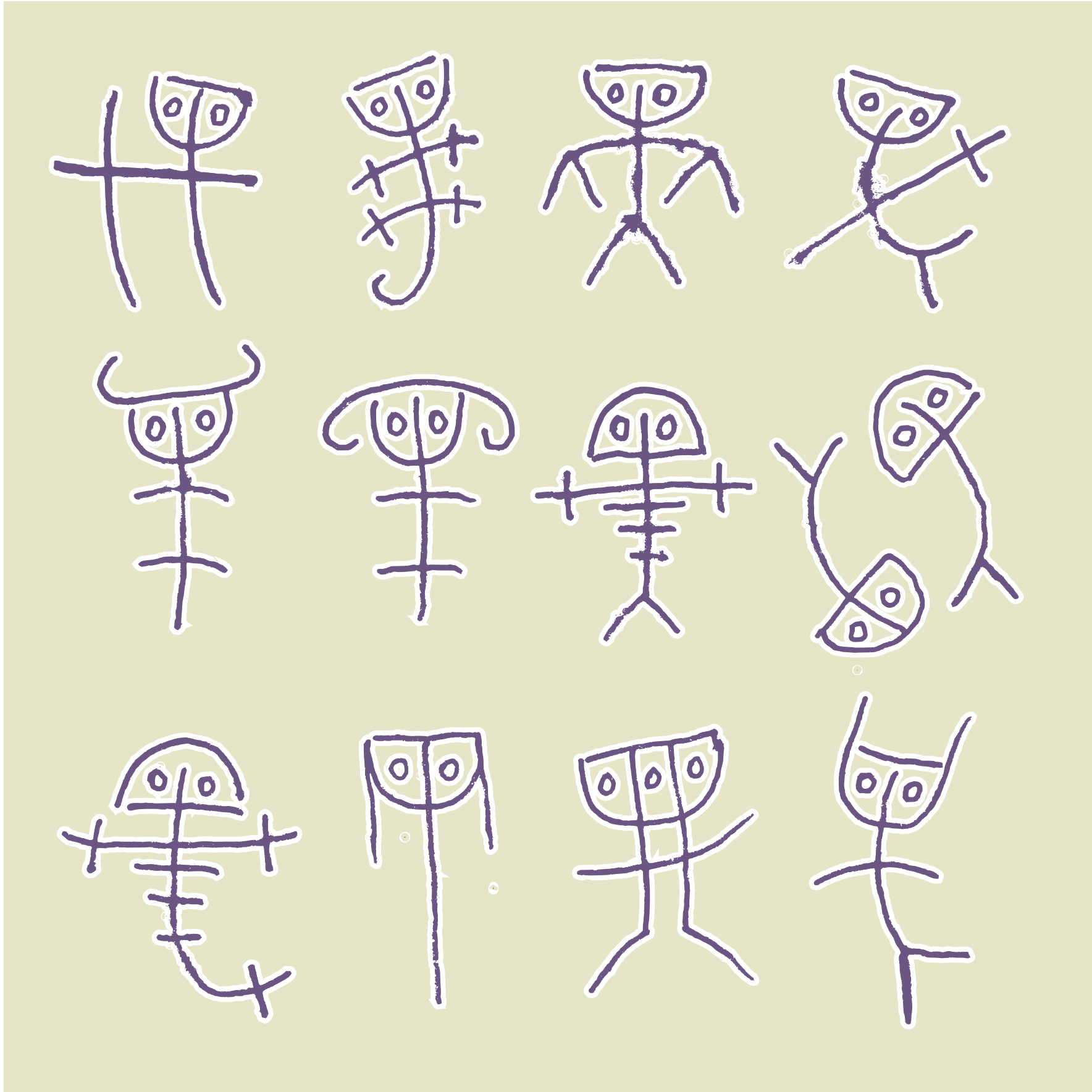 This features a collection of twelve hand-drawn stick figures, each representing one of the zodiac signs. These figures are arranged in a circular pattern on a white background, with each sign positioned at different angles and distances from the center. Each figure is unique, showcasing various poses and expressions that capture the essence of their respective astrological signs. The arrangement creates an interesting visual effect, inviting viewers to appreciate the artistry and craftsmanship behind these charming illustrations.