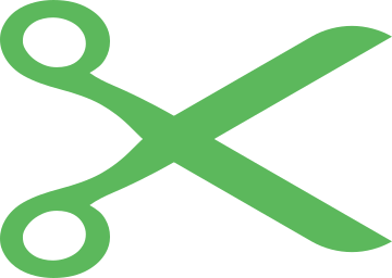 This features a green pair of scissors with white handles, which are prominently displayed in the center. The scissors have a large and bold appearance, making them easily recognizable. The background is a light beige color, providing a simple and clean backdrop for the scissors.