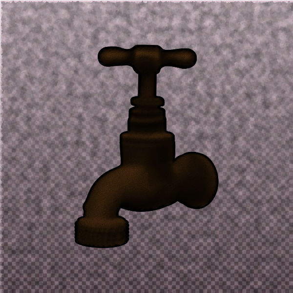 This features a brown faucet with two handles, one on the left and another on the right. The faucet is placed in the center of the scene, surrounded by a gray background that gives it an old-fashioned appearance. The faucet's design appears to be made from wood, adding a rustic touch to the overall look.