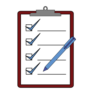 This features a clipboard with a checklist on it. The checklist is filled with several boxes that have been marked as completed, indicating the progress of tasks or items to be done. A pen is placed in one of the boxes, ready for use when needed. The clipboard itself has a red border and appears to be a functional tool for organizing and tracking tasks or goals.