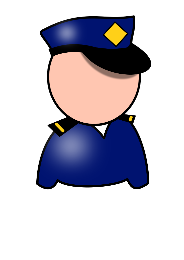 This features a cartoon-like drawing of a police officer in uniform. The officer is wearing a hat and has a blue shirt, which gives the impression that he is dressed for duty. The drawing appears to be a simple, flat design with no facial features or other details, making it an interesting and unique representation of a policeman.