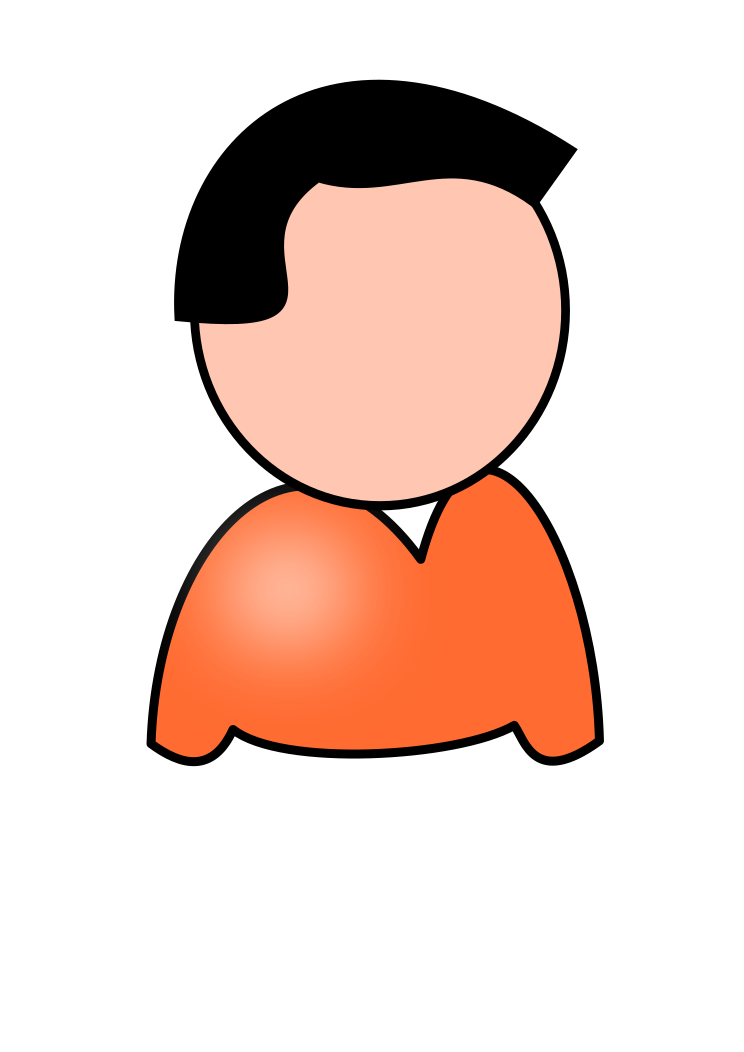 This features a cartoon-like drawing of a man wearing an orange shirt. He is depicted with short hair and appears to be looking straight ahead, possibly towards the viewer. The man's outfit consists of an orange top that covers his upper body, giving him a casual yet stylish appearance. The overall design of the image gives it a playful and fun vibe, making it suitable for various applications such as cartoons or children's illustrations.