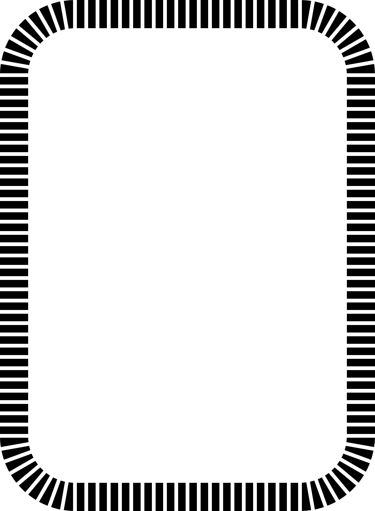 This features a square frame with curved edges, made out of rectangular lines. It is black in color and creates an interesting visual effect. The frame appears to be empty or void of any content, giving it a clean and minimalist appearance. This type of design could be used for various purposes such as artwork, photography, or even as a decorative element in interior spaces.
