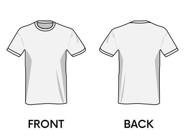 This features two white t-shirts, one on the left and another on the right. Both shirts have a collar and are described as "front" and "back." They appear to be simple, plain white tees without any additional designs or patterns. The labels indicate that they are meant for front and back positions, which is common in clothing construction.