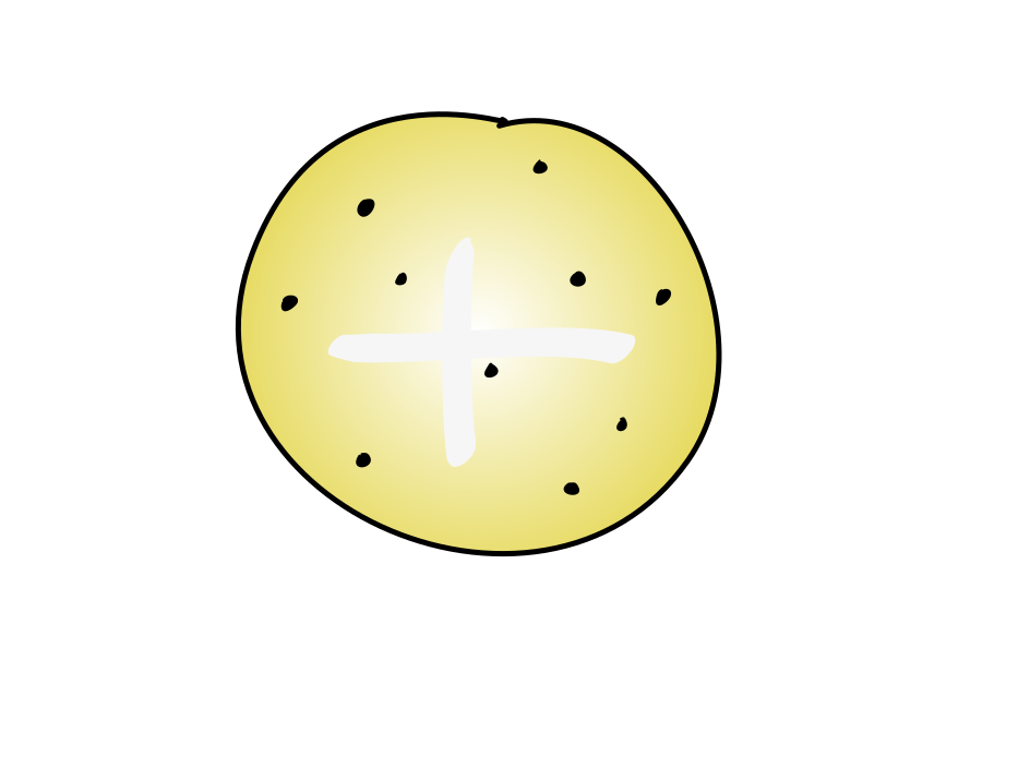 This features a yellow doughnut with black dots on it, placed in the center of the scene. It is surrounded by a white background that creates a contrasting effect between the doughnut and its surroundings. The doughnut appears to be a simple drawing or illustration rather than an actual food item.