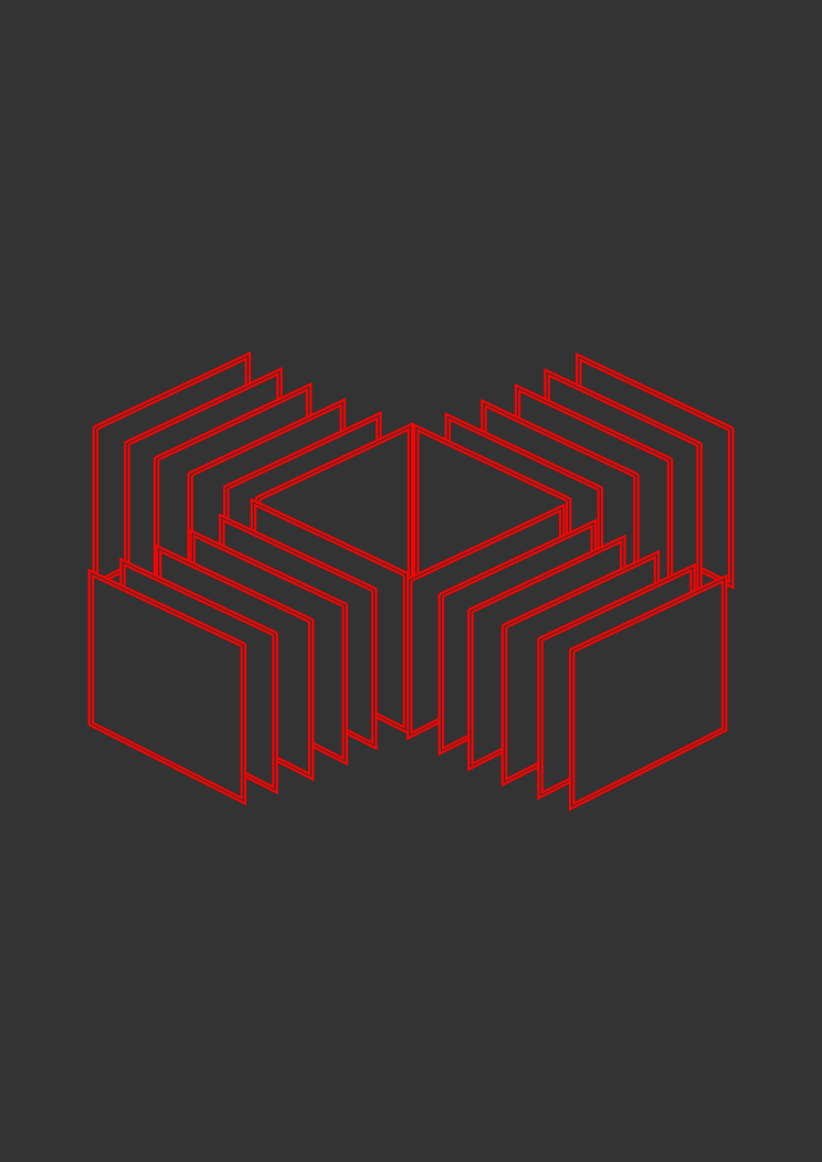 This features a red and black design, which appears to be an abstract representation of a building. The design is composed of multiple squares arranged in various patterns, creating a visually striking composition. The colors used are predominantly red and black, with the red squares standing out against the darker background. This unique artwork could potentially serve as a decorative piece or an interesting visual element for any space it occupies.