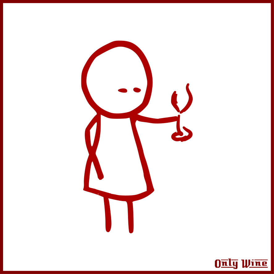 This features a red cartoon character holding a wine glass, possibly a woman. She is standing in front of a red background with her arm extended towards the viewer. The wine glass she holds appears to be empty, and it seems like she might be posing for a picture or simply enjoying a moment of relaxation. The overall scene has a playful and lighthearted atmosphere.