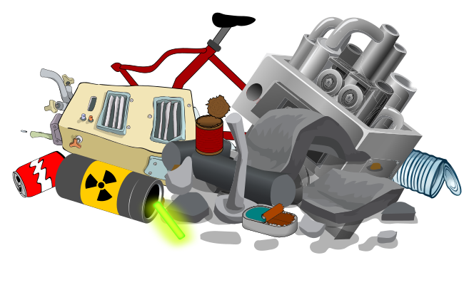 Tags: waste, scrap metal, rust, can, radiation, hazard, dump, radioactivity, hazmat, metal, cartoon, toy, drawing
