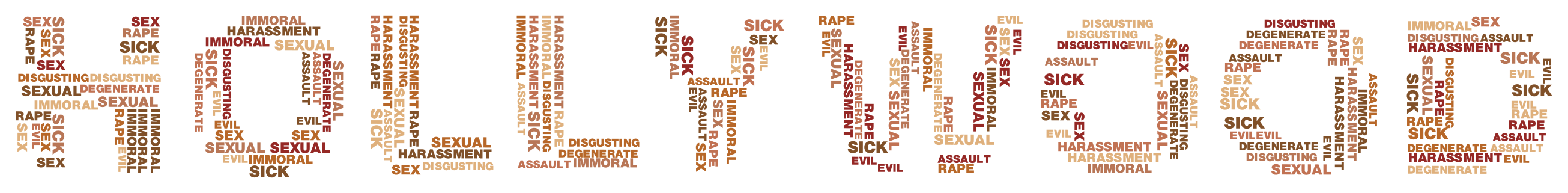 This is a close-up of the word "Hollywood" written in white letters. The letters are arranged in a way that makes it look like they are made out of Legos, giving the impression of a playful and creative display. The word "Hollywood" appears to be the main focus of the image, with no other elements or distractions visible.