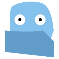 This features a blue and white cartoon character with two eyes, one on each side of its head. It appears to be wearing a blue blanket or sheet that covers most of its body. The character's design is simple yet charming, making it an appealing visual element in the image.