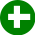 This features a green circle with a white cross inside of it. This symbol is commonly associated with medical care and health services, as well as being used in various contexts such as hospitals, clinics, and pharmacies. The color combination of green and white creates a visually appealing contrast that makes the symbol stand out.