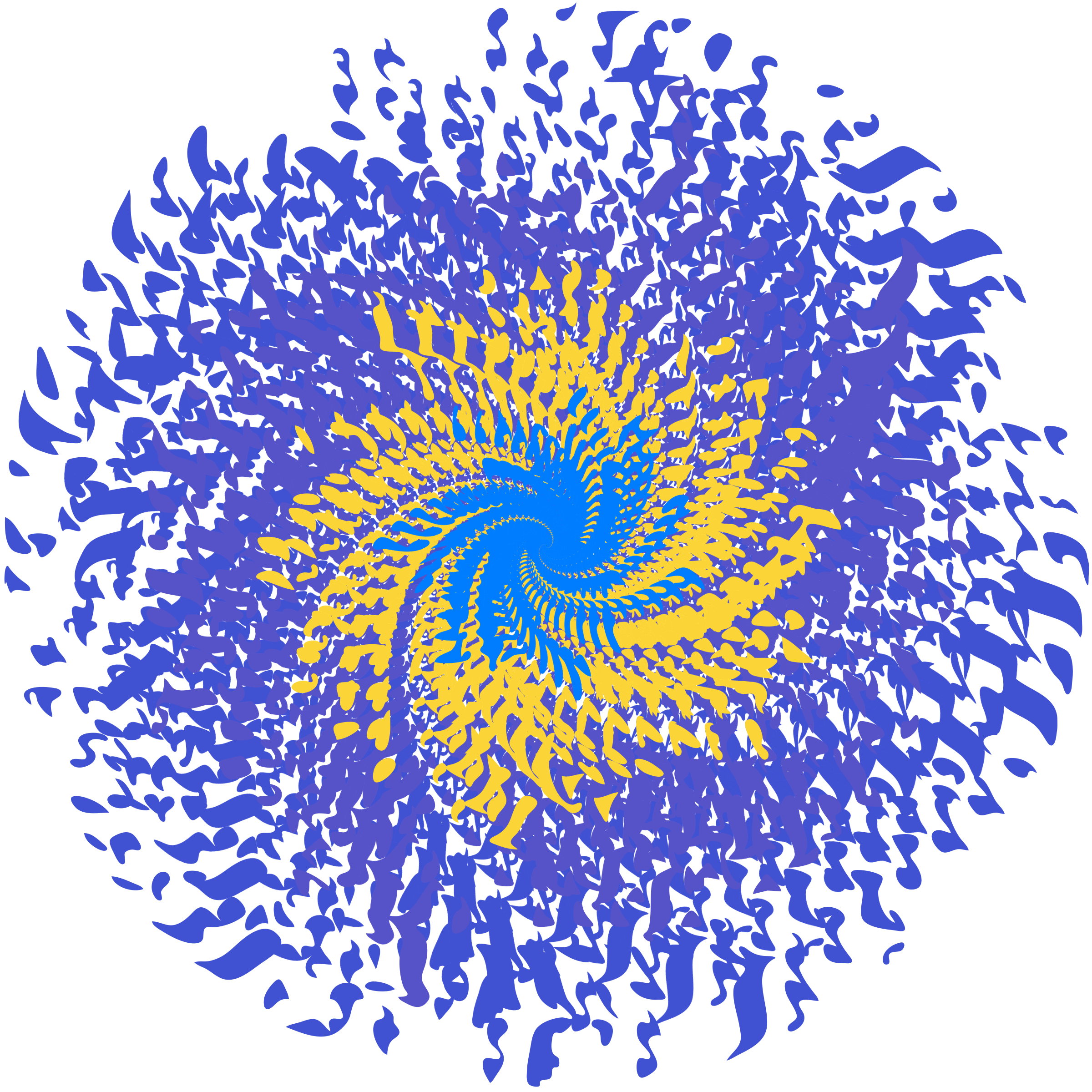 This features a blue and yellow spiral pattern, which appears to be a close-up of a swirl. This swirl is made up of various shapes and colors, including blue and yellow. The overall effect gives the impression of a vortex or a whirlpool. The swirl seems to be a part of an artistic design, possibly used as a background for other elements in a composition.