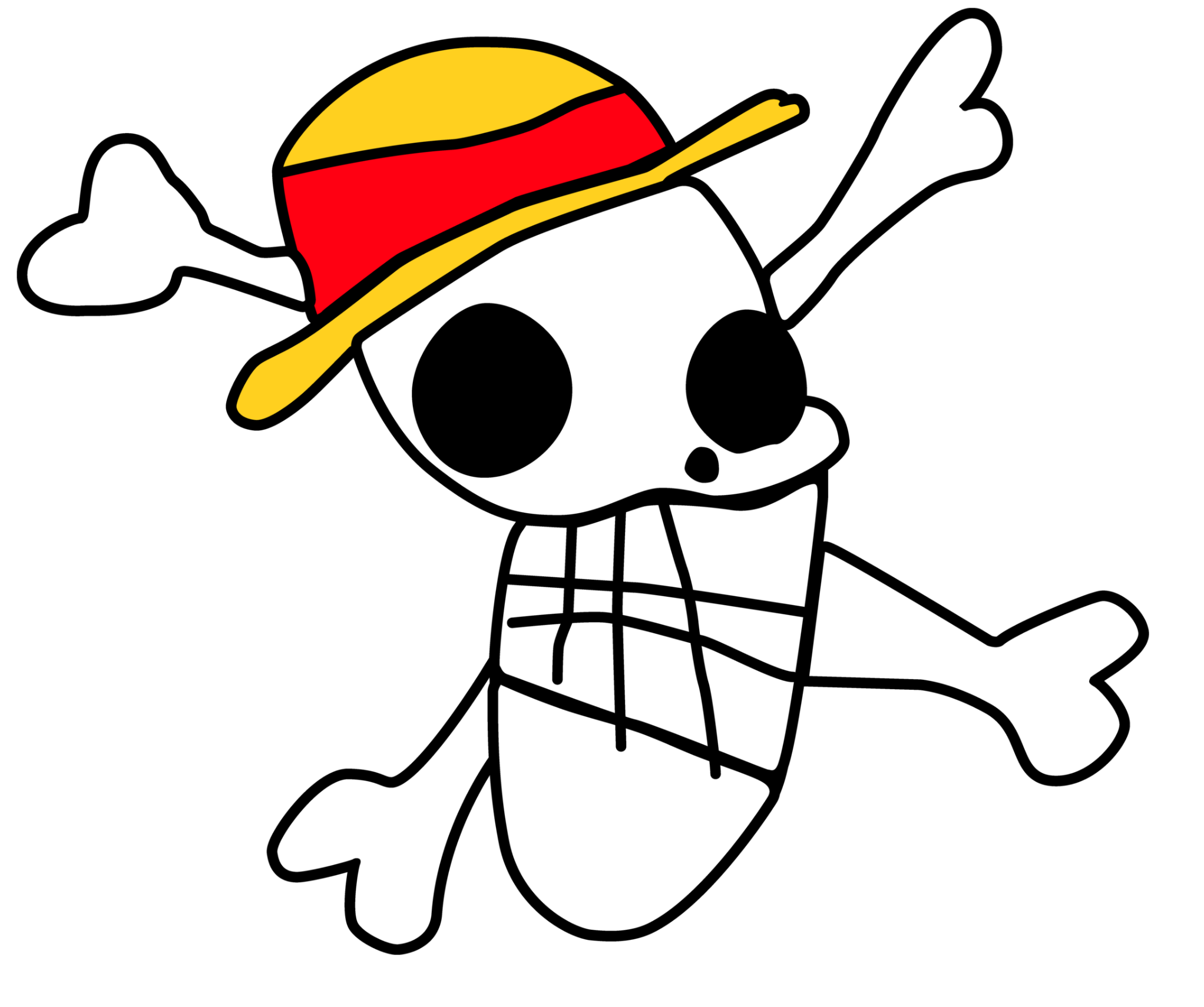This features a colorful cartoon character with an anime-style design. This character is wearing a red and yellow striped hat, which adds to its unique appearance. The character appears to be a skeleton or a skull, giving it a spooky yet playful vibe. It's also holding a bone in one hand, further emphasizing the character's theme. The overall design of this cartoon is visually appealing and engaging for viewers.
