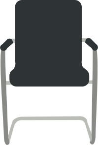 This features a black chair with silver legs, placed in the center of the scene. It is an empty chair without any occupants or additional furniture around it. The chair appears to be made of metal and has a sleek design. Its positioning suggests that it could be part of a larger seating arrangement or simply a standalone piece of furniture.