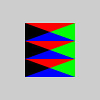 This features a square with four triangles in each of its corners. These triangles are colored black, blue, red and green, creating a visually striking pattern. The colors are arranged in such a way that the triangles alternate between the different hues, making for an interesting and eye-catching design.
