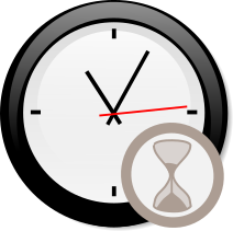 This features a clock with the hands on the numbers 1 and 2. A small circle is placed next to the clock, which appears to be an hourglass or a timer. This combination of elements suggests that the image might represent time management or the passage of time. The clock's position in the upper left corner of the image indicates its importance as a central element within the composition.