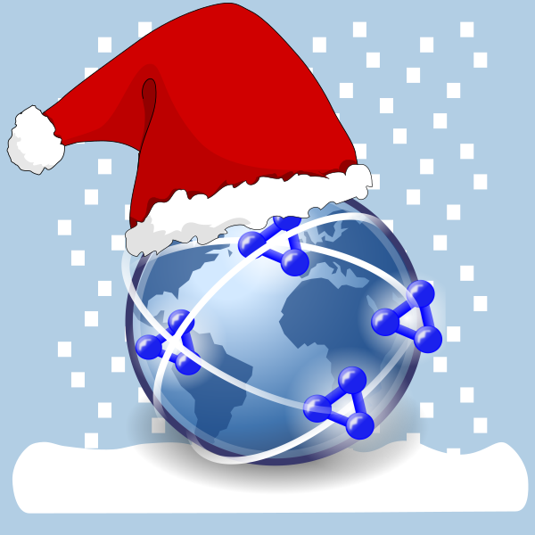 Tags: santa hat, globe, blue, snowflake
