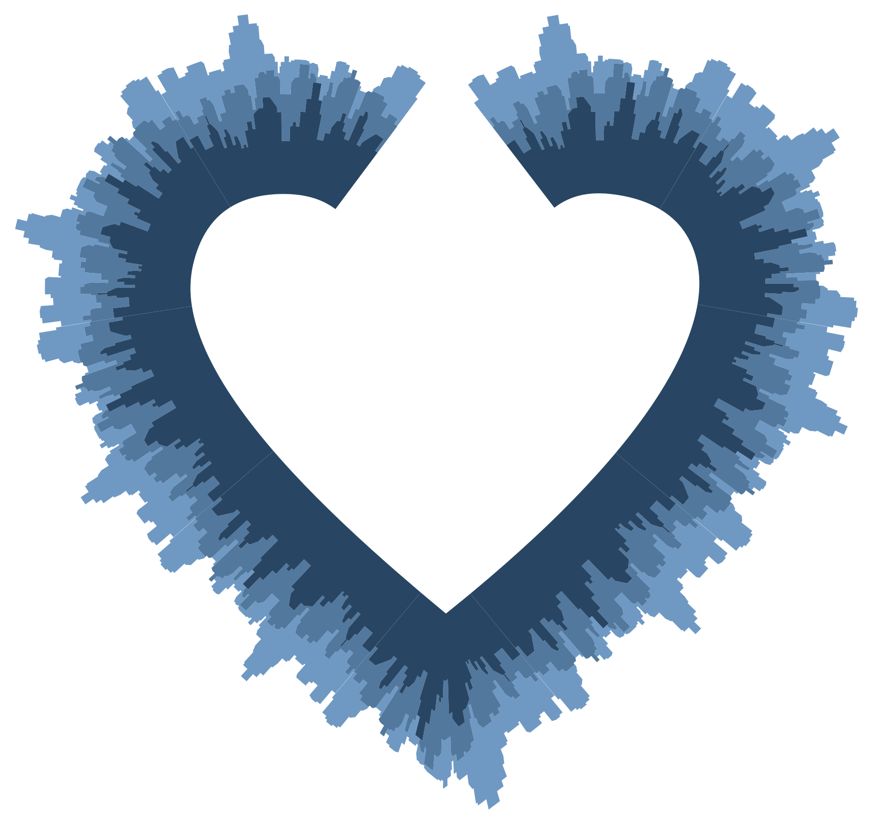 This features a heart-shaped design with the city skyline in the background. The heart is made up of two distinct sections, one on top and another below it. The top section has a more prominent cityscape, while the bottom section appears to be less detailed. The overall effect creates an interesting visual contrast between the heart shape and the urban landscape.