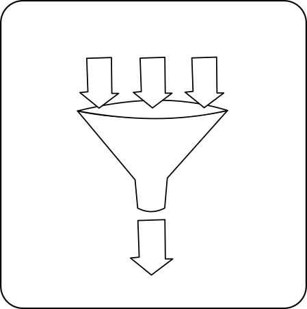 This features a simple illustration of a funnel, with three arrows pointing in different directions. This design is likely used to convey the concept of a funnel or a channeling process. The arrows are placed at various angles and heights, indicating that they are all part of the same overall structure. The simplicity of this image makes it easy for viewers to understand the intended message without any confusion.