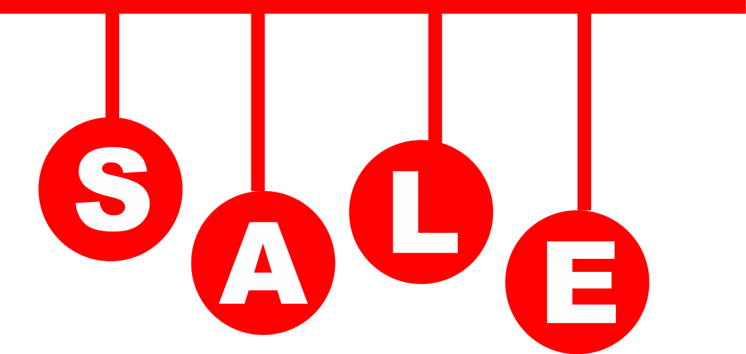 This features a sale sign with the word "SALE" written in red letters. These letters are hanging from a red line, creating an eye-catching display. There are five red circles surrounding each letter of the word "SALE," adding to the visual appeal and emphasizing the sale promotion. This creative presentation is likely intended to draw attention to the sale and encourage potential customers to take advantage of the discounted prices offered by the store or business.