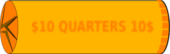 This features a roll of quarters that is orange in color and has a black outline. It reads "$10 QUARTERS 10$" on it, indicating the value of the coins inside. The roll contains ten quarters, each worth one dollar, making it an ideal way to store and transport change. This type of coin holder is convenient for both personal use and businesses that deal with cash transactions.