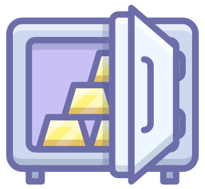 This features a television set with an open door revealing stacks of gold bars inside. There are several piles of money visible, showcasing the wealth stored within the TV. This unique design choice adds a touch of humor and creativity to the otherwise ordinary appliance.