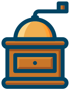 This features a brown coffee grinder with a round top, which is an iconic symbol for coffee. The handle of the grinder is prominently displayed on the side, making it easy to use and operate. This illustration captures the essence of a classic coffee-making tool that has been used by many people over time.