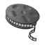 This features a close-up of an old-fashioned movie reel with a black background. The reel is prominently displayed, taking up most of the frame. It appears to be a vintage item, possibly used for filming or displaying movies in the past. The reel's design and color give it a classic feel, making it an interesting subject for viewers who appreciate the history of cinema.