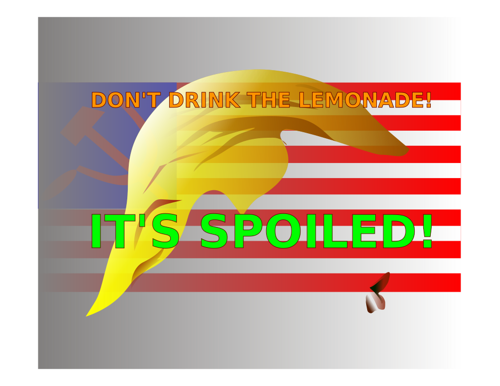 This features a large yellow leaf with the words "Don't Drink the Lemonade!" written on it. This message is displayed in front of an American flag, which serves as the background for this patriotic statement. The combination of the bold text and the national symbol creates a striking visual effect that draws attention to the message being conveyed.
