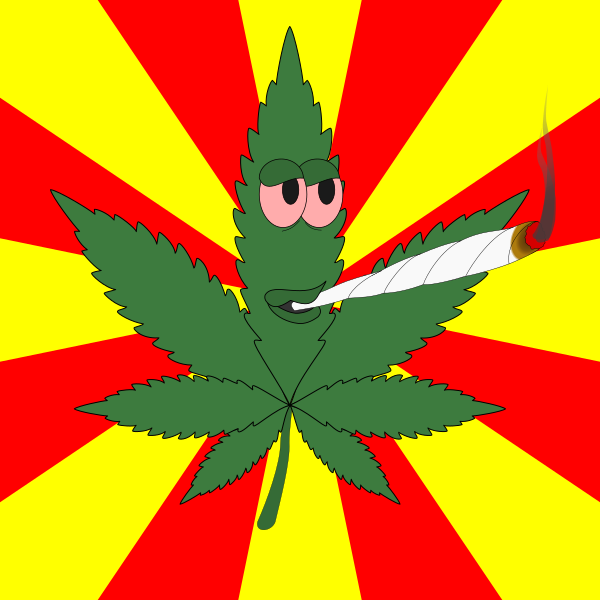 This features a cartoon of a marijuana leaf, which is the central focus of the scene. The leaf has been animated to appear as if it's smoking a joint, giving off a psychedelic vibe. The leaf is positioned in the center of the frame and appears to be enjoying its smoke. The overall composition of the image creates an interesting visual experience that combines elements of nature with human-like characteristics.