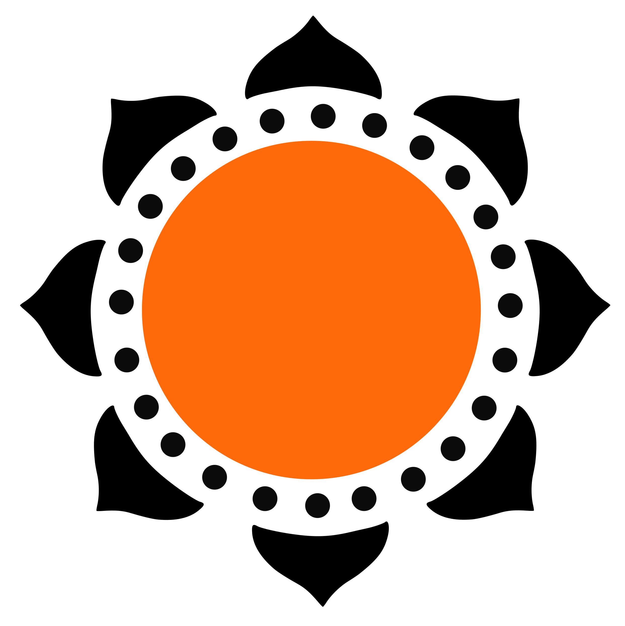 This features a large, round orange circle with black dots surrounding it. This design resembles an orange sun or flower, giving the impression of a vibrant and lively atmosphere. The black dots add depth to the overall appearance, creating a visually appealing contrast against the bright orange background.