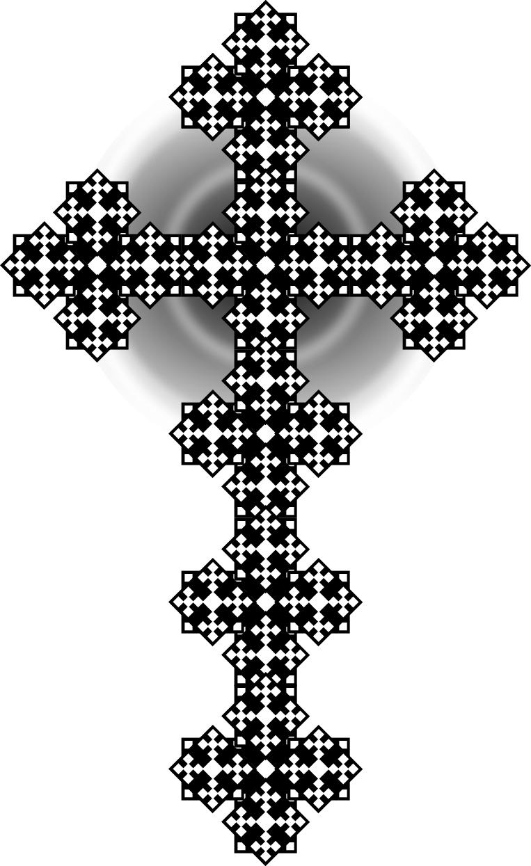 This features a large, intricately designed cross made up of many small squares. Each square is filled with a pattern that resembles a diamond shape. The cross itself has an ornate design and appears to be the focal point of the image. The overall effect is one of elegance and sophistication, as the cross stands out against its background.