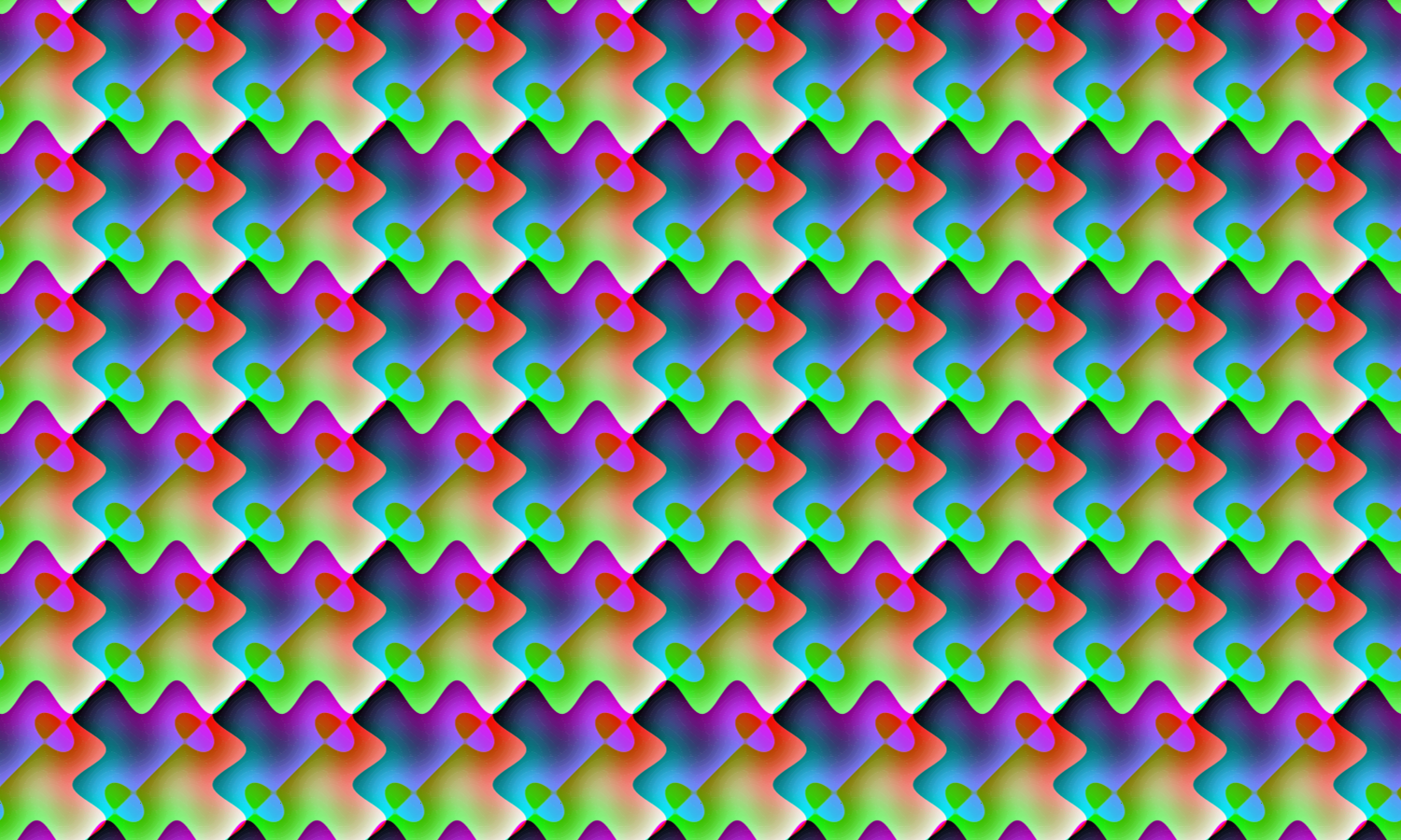 This features a pattern made by distorting a simple design using the 'sin waves' plugin for Paint.net and vectorizing it in Vector Magic. This creates an interesting, colorful, and intricate design that is reminiscent of a kaleidoscope or a mosaic. The pattern consists of various shapes, including triangles, squares, and circles, all arranged in a visually appealing manner. The colors used are vibrant and varied, adding depth and interest to the overall composition. This unique design could be used for various purposes such as wallpaper, fabric patterns, or even as an artistic piece.