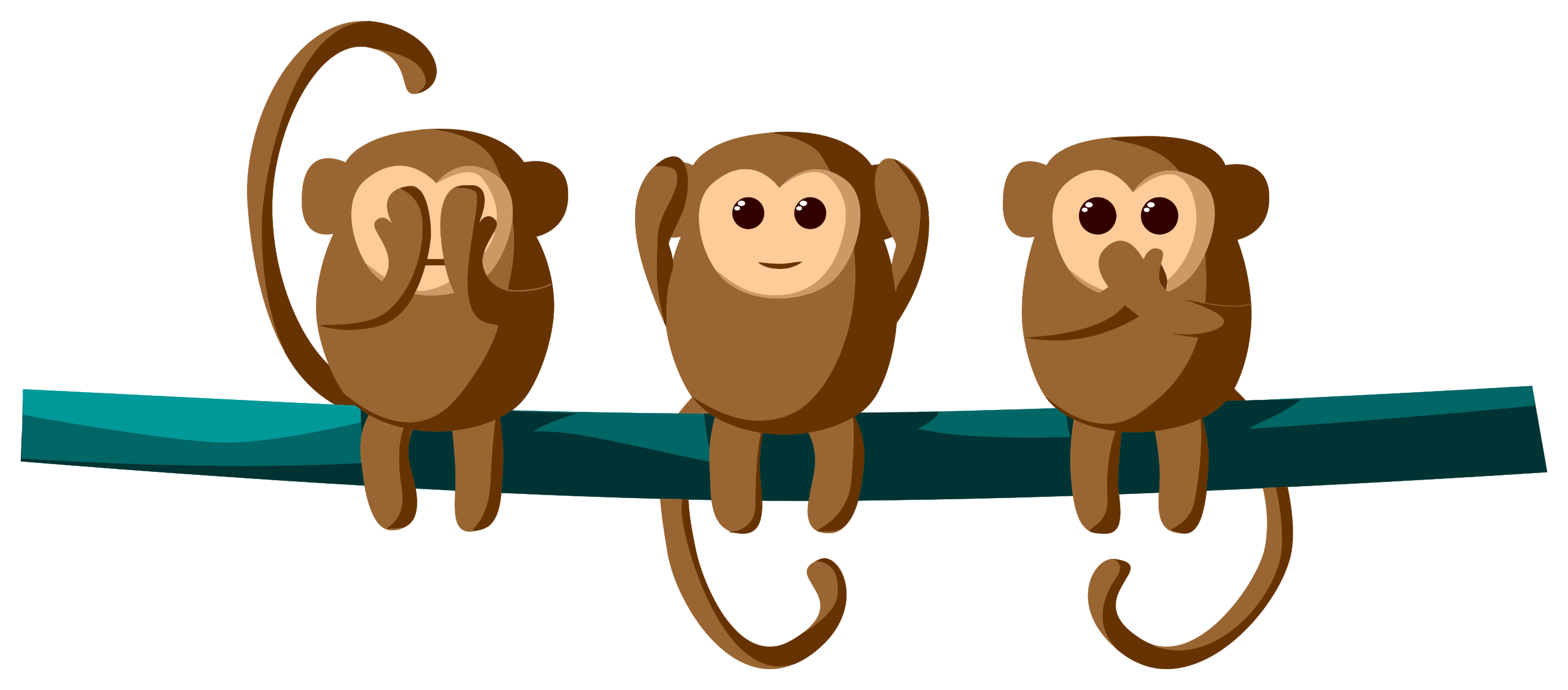 This features a delightful illustration of three cartoon monkeys sitting on a branch. Each monkey is positioned at different heights, with one monkey being the highest and the other two lower down. They are all looking in the same direction, possibly towards something interesting or engaging. These monkeys are often referred to as the Three Wise Monkeys, symbolizing the idea of avoiding evil by not seeing, hearing, or speaking it. The image captures a light-hearted and playful moment with these iconic characters.