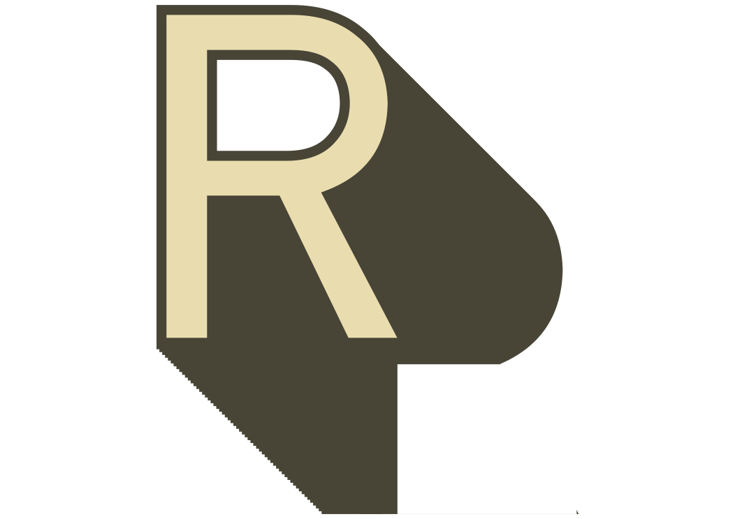 This features a close-up of the letter R, which is beige in color and has a black outline. It appears to be casting a shadow that resembles the shape of the letter P. This unique perspective adds an interesting visual element to the otherwise simple design of the letter.