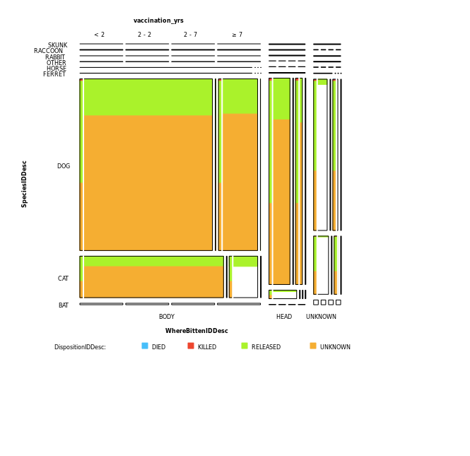 This is a graphic representation of a computer program, likely related to data analysis or visualization. It features multiple rows and columns filled with various colors, including yellow, green, orange, blue, and white. These colors are used to represent different categories or values within the data set. The graphic appears to be a table or spreadsheet, with each row representing a specific category or value, while the columns indicate different aspects of the data. The use of color-coding helps in making it easier for users to understand and interpret the information presented in the chart. This type of visual representation is commonly used in businesses, research, and other fields where analyzing large amounts of data is necessary.