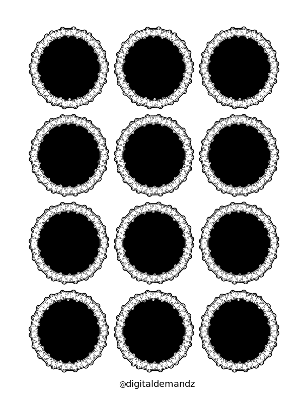 This features a collection of nine black and white circular designs, each with a different pattern. These patterns are reminiscent of puzzle pieces, creating an interesting visual effect when combined. The circular designs vary in size and shape, making the overall composition diverse and engaging. This artistic arrangement can be used as stickers or for other decorative purposes, adding a unique touch to any space they occupy.