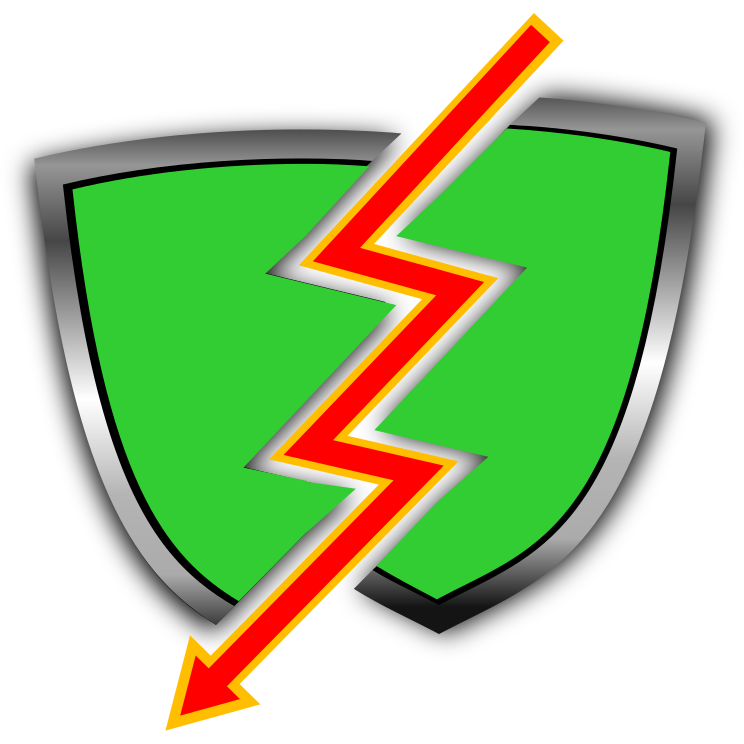 This features a green shield with an orange lightning bolt going through it. This unique design gives the impression of a shield being broken by the lightning bolt, creating a striking visual effect. The shield is adorned with a metallic frame that adds to its overall appearance and makes it stand out as a distinctive symbol.
