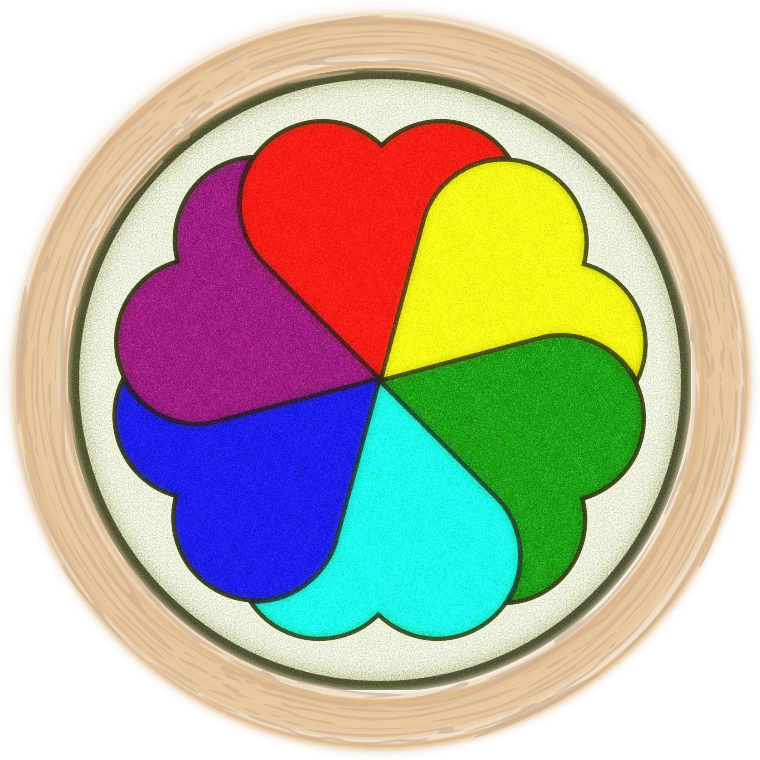 This features a round stained glass window with four different colored hearts. Each heart is of a distinct color, including blue, green, yellow, and red. These hearts are arranged in a circular pattern, creating an eye-catching design. The wooden frame surrounding the stained glass adds to its charm and complements the vibrant colors of the hearts. This unique piece of artwork can be appreciated for both its visual appeal and craftsmanship.