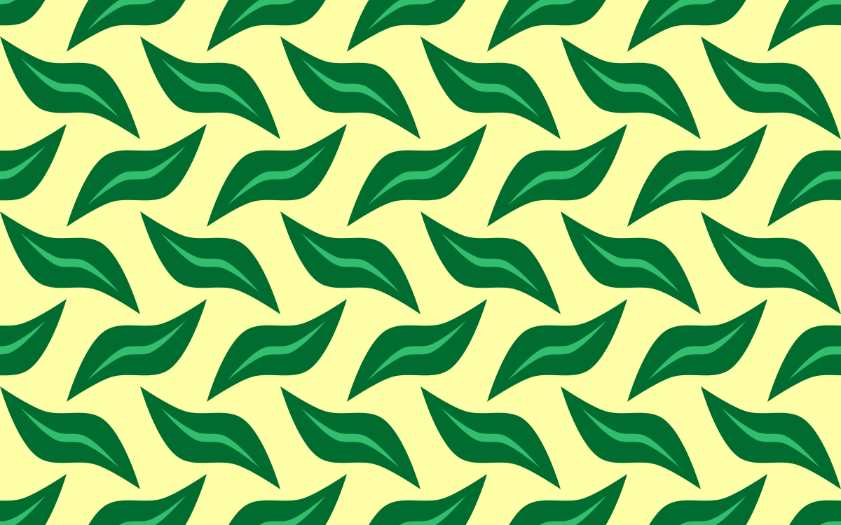 This features a pattern of green leaves on a yellow background. There are several different types of leaves in the design, each varying slightly in shape and size. Some of the leaves are larger and more prominent, while others are smaller and less noticeable. Overall, the pattern creates an interesting visual effect with the contrasting colors of green and yellow.